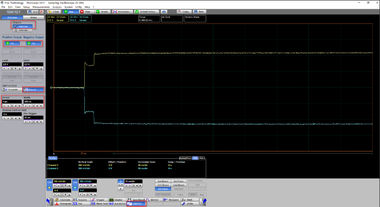 Step 3: 打开 TDR 激励源; 当测量单端 TDR 时,只需要打开 Positive Output