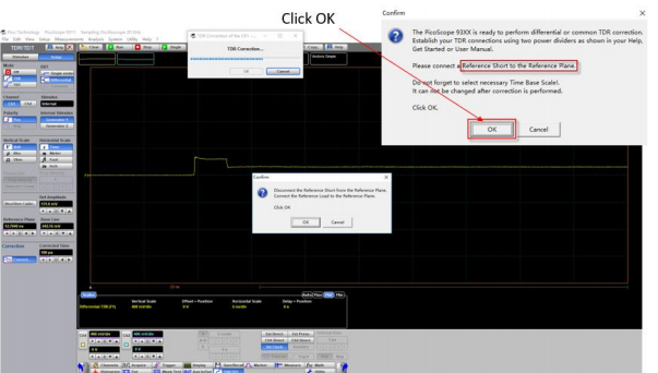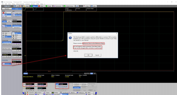 Step 8: 校准-点击 Correction; 设置 Corrected Time 至 100ps; 在连接 ReferenceShort 之前不要点击 OK
