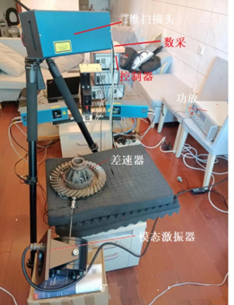 为了准确得到差速器的模态特性,项目组搭建了一套高精度振动测试及分析系统。该测试系统基于随机信号采用激振器对差速器实现强迫振动,使其各阶模态激发出来,同时试验过程中基于有限元方法进行分析,确保试验结果的有效性。